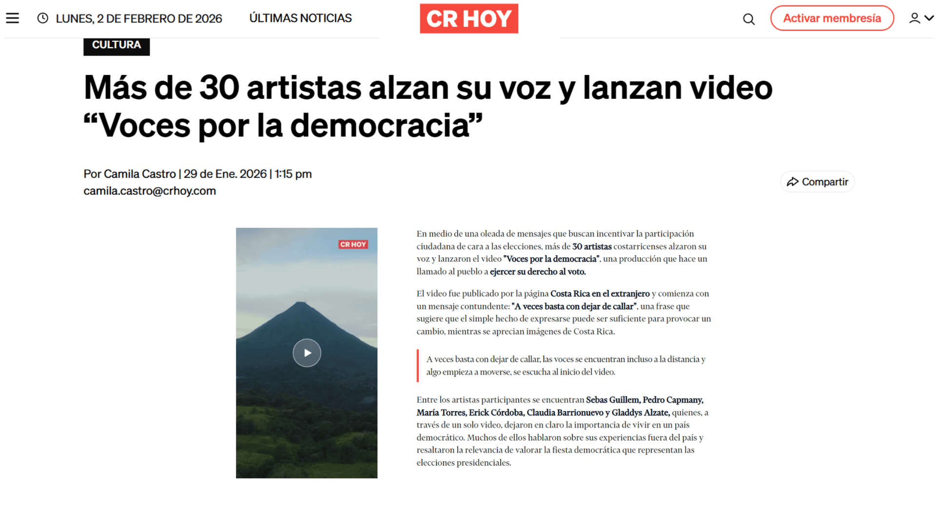 Developed over an intensive five-day production process, the video was collaboratively produced across multiple countries. Its creative direction, coordination, editing, and production were led entirely by Costa Rican women living abroad, with the participation of filmmaker Laura Ávila Tacsan. The project intentionally avoids partisan messaging, positioning itself instead as a civic intervention that values plurality, dialogue, and collective memory. I worked as the video editor and was responsible for conceptualizing the visual language of the piece. The editing approach focused on emotional rhythm, clarity, and intimacy, allowing each voice to resonate while maintaining a cohesive narrative flow. The visual style was designed to be restrained and human-centered, supporting the spoken messages without overshadowing them.