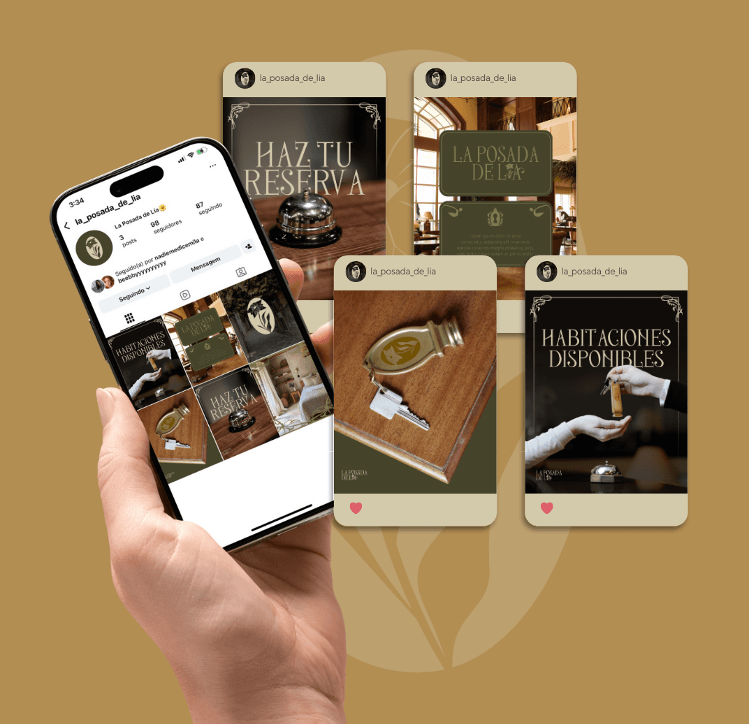 For La Posada de Lía, an independent boutique hotel in Extremadura, I created a complete brand and visual identity system rooted in the elegance of Art Nouveau and the richness of local nature. The concept draws from organic shapes, flowing lines, and the region’s distinctive flora, blending these elements into a warm, bohemian aesthetic that reflects the hotel’s atmosphere and values. Central to the identity is the hotel’s iconic flower, reinterpreted through an illustrative approach that connects tradition with contemporary design. The branding includes logo development, typography exploration, and a cohesive visual language adaptable to signage, digital communication, and printed materials. The result is a timeless, nature-infused identity that strengthens the hotel’s character and guest experience.