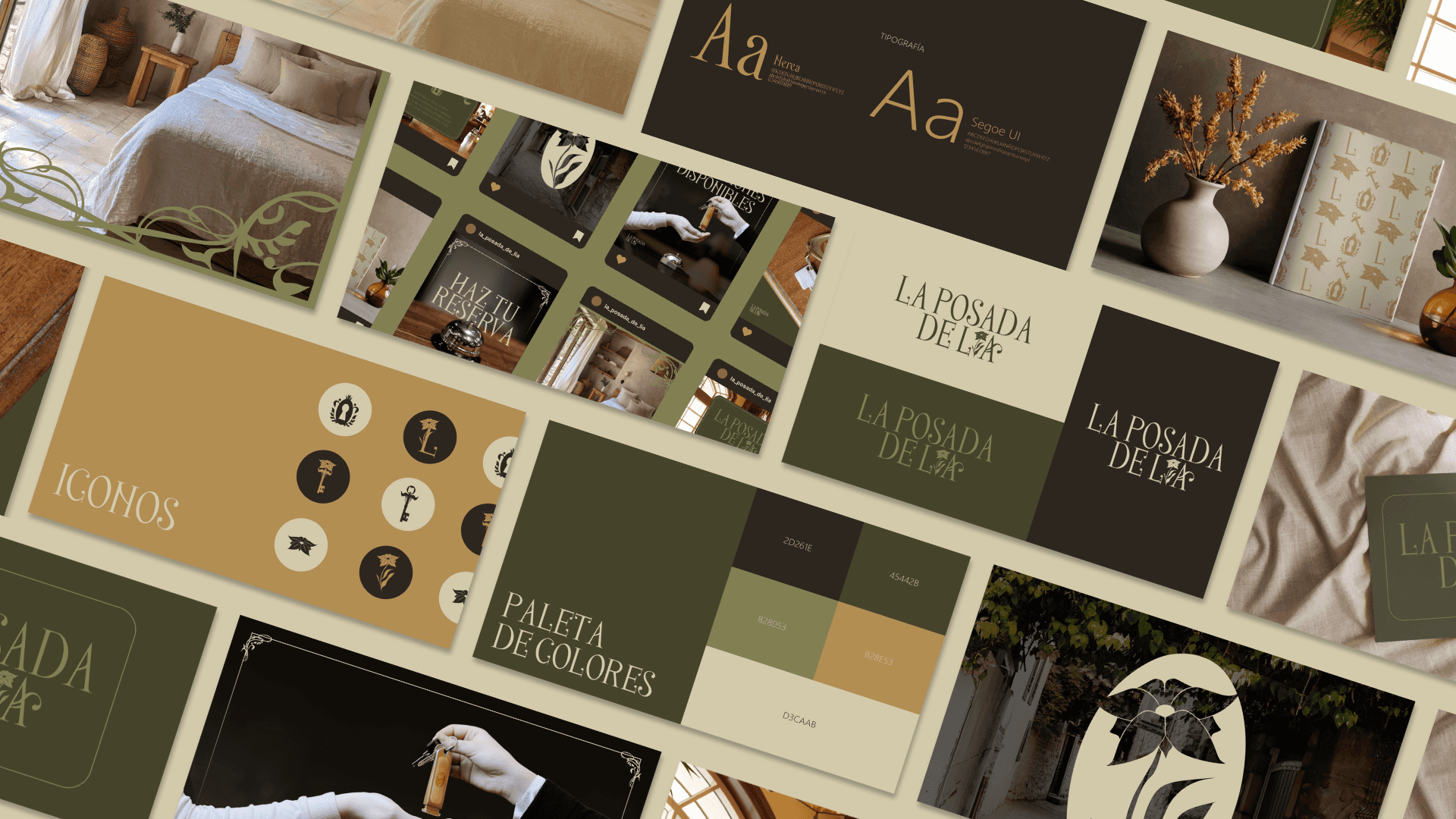 Branding and visual identity development for La Posada de Lía, an Extremaduran boutique hotel. Designed an organic, bohemian identity inspired by Art Nouveau, regional flora, and the hotel’s iconic flower emblem.