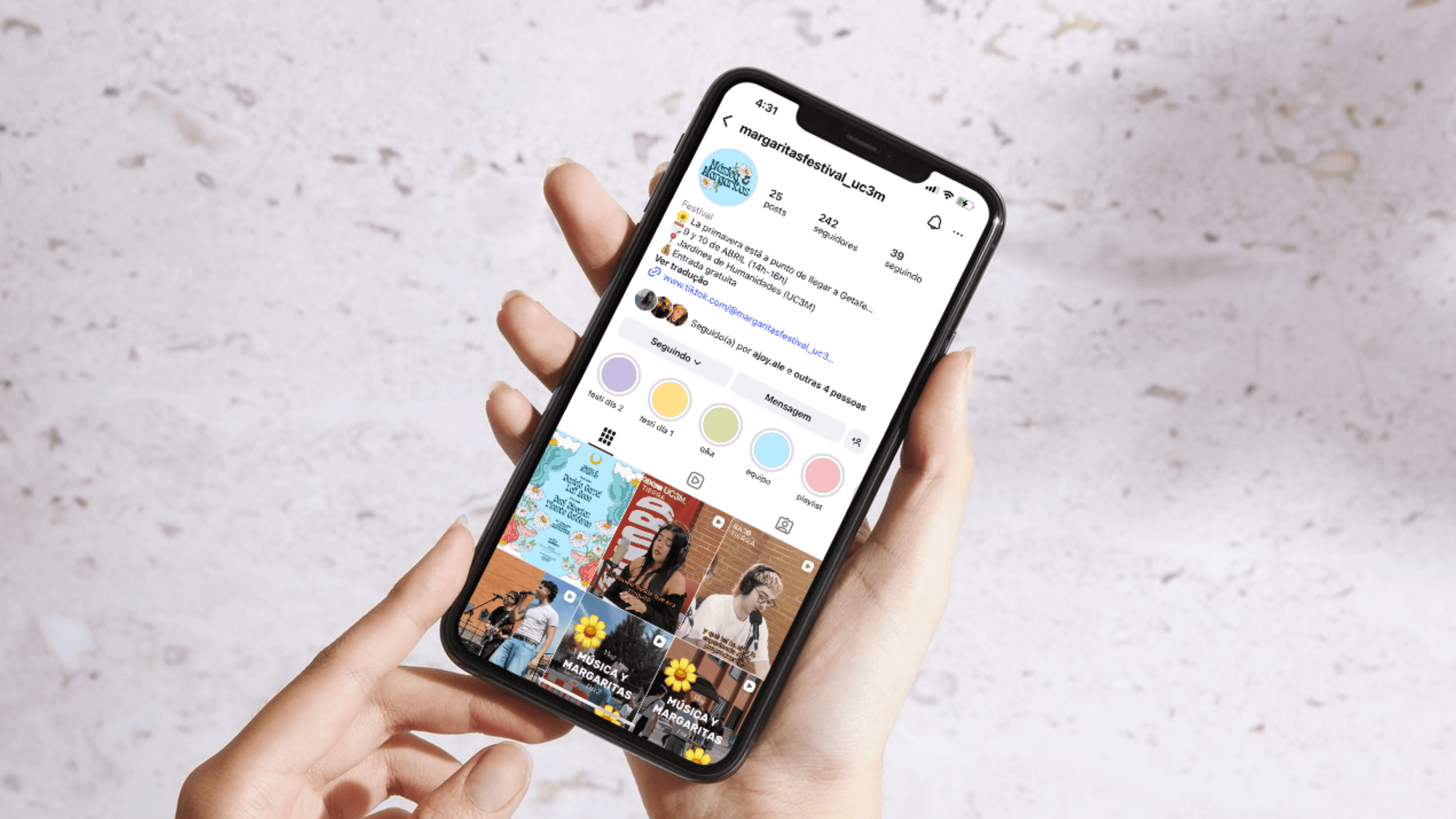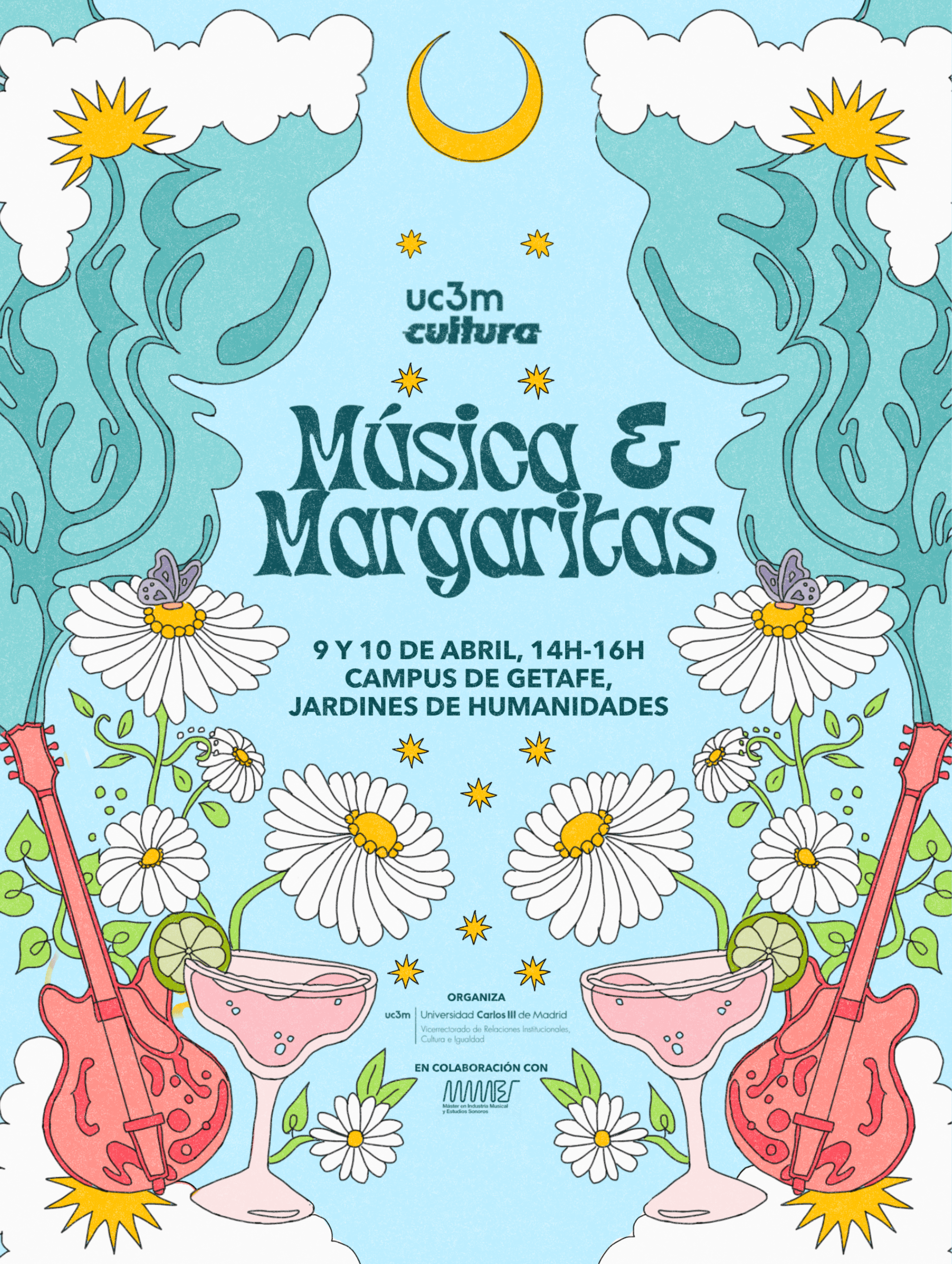 For Música y Margaritas, the music festival organized by the Master’s in Music Industry and Sound Studies at Universidad Carlos III de Madrid, I developed the branding and visual identity, including the official poster, logo, and digital assets. The creative approach centered on a sketch-style illustration, designed to feel spontaneous, energetic, and aligned with the festival’s youthful atmosphere. Working within a pre-established color palette, I crafted a cohesive visual language adaptable across print and social media formats.